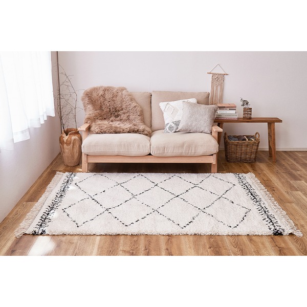 ウールの3大産地からそれぞれ特長のあるウールと各産地の特徴的なモチーフをカーペットに落とし込んだ、伝統を感じさせながらも新しいウールラグシリーズです。英国紳士に愛されるツイードジャケットがモチーフ。ツイードの伝統柄であるヘリンボンをアレンジしました。「インテリアファブリックス性能評価協議会」の基準をクリアした防ダニ加工品です。医療用資材を使用した滑り止めを採用しているので、小さなお子様のいるご家庭でも安心♪ホットカーペットや床暖房の上でも使用可能なので、オールシーズン活躍できます。■サイズ:約130×190cm■素材:ウール100%■パイル長:約9/3.5mm■その他:日本製、タフテッド■機能:メディカルストップ(滑り止め)、防ダニ加工、ホットカーペット・床暖房対応、防炎、ウールマーク、F & star;☆☆☆(ホルムアルデヒドをほぼ放出しない)※サイズ表記は若干異なる場合があります。※ウールやアクリル、綿などの紡績糸を使用した商品は繊維の特性上、多少遊び毛のでることがあります。※光の当たり具合や目方向などにより、色合いが違って見える場合がございます。