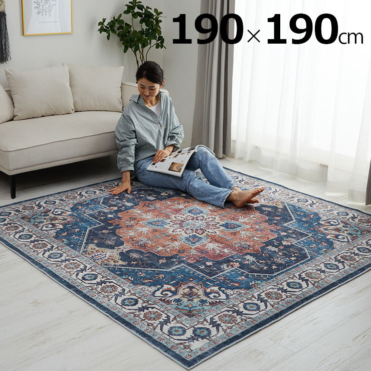■【ホットカーペット/床暖房対応】ラグ ラグマット 洗える 190x190cm ネイソン カーペット 正方形 ラグカーペット 2畳 おしゃれ 絨毯 マイ