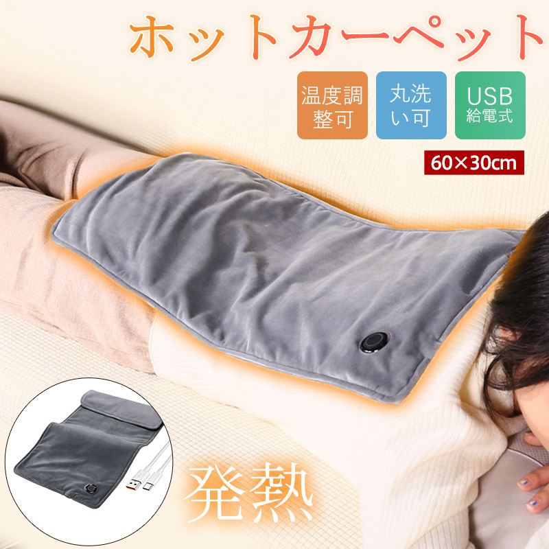 ■ホットマット ホットカーペット 60×30cm 3段階温度調節 一人用 ブランケット 電気毛布 オフィス 洗える 在宅勤務 膝掛け