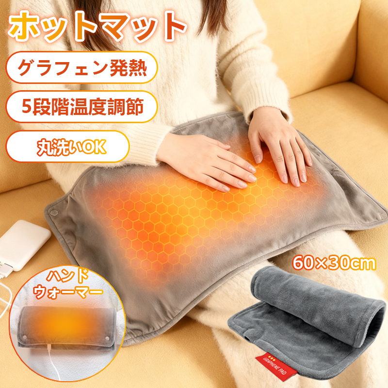 ■「クーポン配布中」【即納】電気マット ホットカーペット ホットマット 5段温度調節 60×30cm 電気毛布 電熱毛布 ハンドウォーマー 加熱