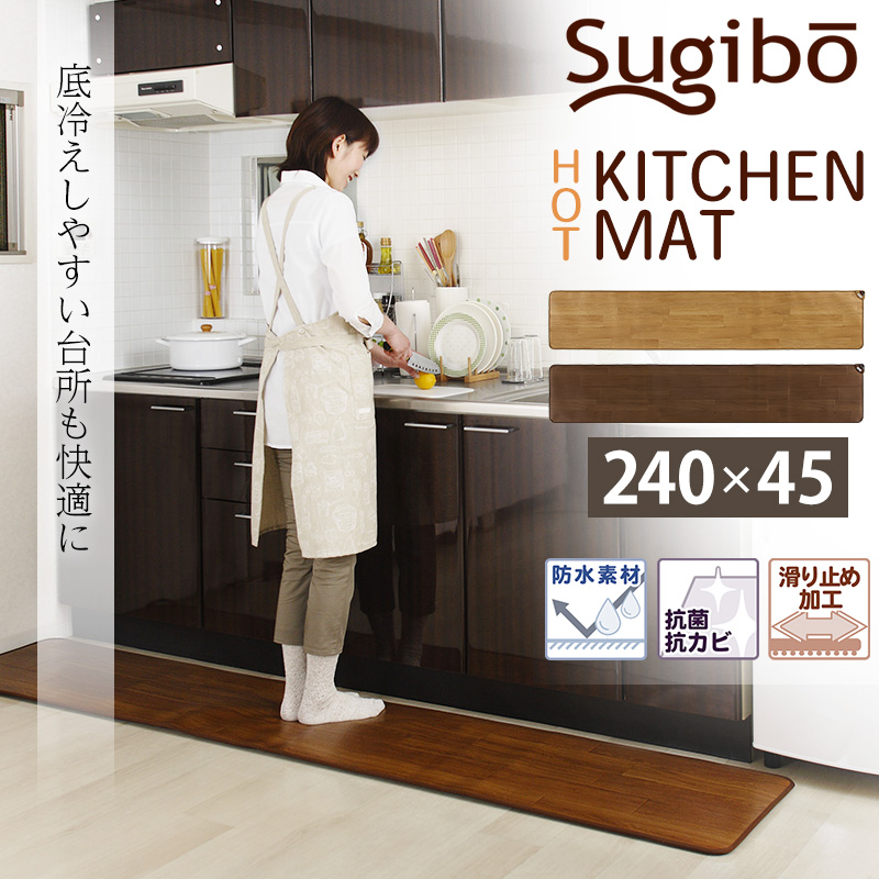 ■ホットキッチンマット 床暖房 45×240cm 防水 抗菌 お洒落 フローリング調 ロングサイズ ホットカーペット 電気 省エネ 日本製 冷え対策