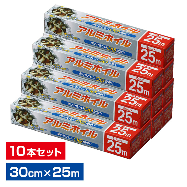 ■まとめ買い アルミホイル 30cm×25m 10本セット | アルミ箔 クッキングホイル 紙刃 オーブントースター 防災 アルミはく オーブン調理