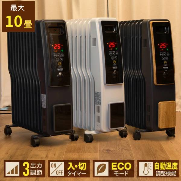 ■【 最大10畳対応 】 ヒーター オイルヒーター キャスター付き デジタル表示 即暖 10畳 8畳 S型フィン 11枚フィン 和室 洋室 キャスター付