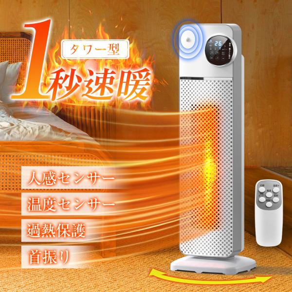 ■人感機能付き ヒーター セラミックヒーター タワー型 ファンヒーター 1秒速暖 自由温度調整 送風機能 タイマ 電気ヒーター 冬 転倒オフ
