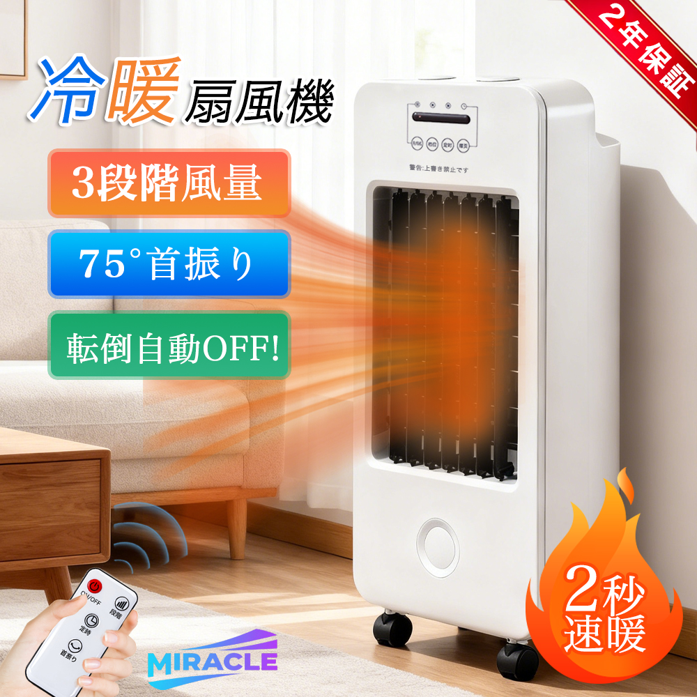 ■セラミックヒーター 2秒速暖 サーキュレーター 首振り 温風 扇風機 ファンヒーター 3段階切替 暖房器具 省エネ 転倒自動オフ 大風量 足元