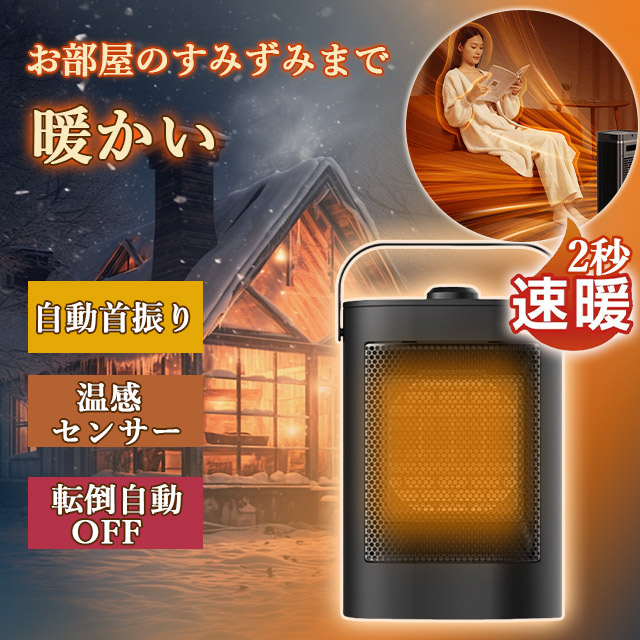 ■最安挑戦 冬新作 送料無料 新作 セラミックヒーター 2秒速暖 大風量 ファンヒーター 自動首振り ヒーター 小型 足元 ヒーター 1200W 瞬