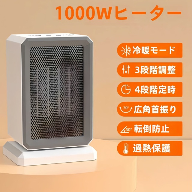 セラミックヒーター 冷暖兼用 ヒーター ファンヒーター 暖房 3秒速暖 3段階風量調節 首振り 定時 小型 静音 軽量 転倒自動オフ 暖房器具 防寒対策 安全 省エネ