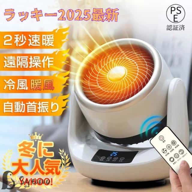 セラミックヒーター ヒーター 小型 首振り 速暖 冷暖両用 扇風機 ファンヒーター 温風ヒーター 温冷風扇 自動首振り リモコン付き 転倒自動停止 足元 瞬時発熱