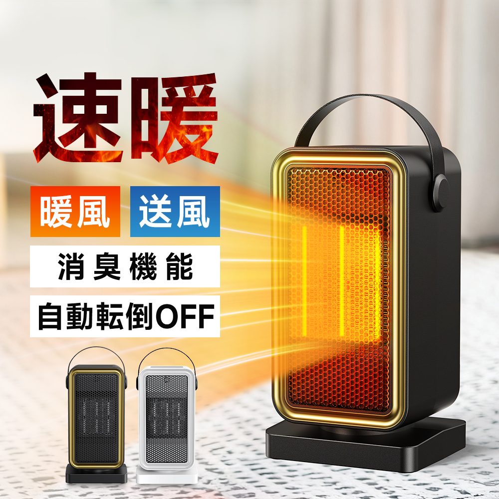 セラミックヒーター 小型 ファンヒーター 速暖 静音 省エネ 足元 ミニ ヒーター コンパクト 卓上ヒーター 12畳部屋対応 2秒速暖 電気ファンヒーター 大風量 過熱保護 転倒オフ 電気 持ち運び 軽量 ダイニング 暖房 トイレ 寝室 オフィス