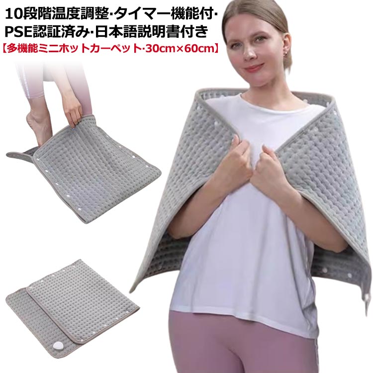 ■ホットマット ミニ ホットカーペット 30cm×60cm デスク下 電気マット 電気毛布 ホットブランケット フランネル 敷毛布 10段階温度調節