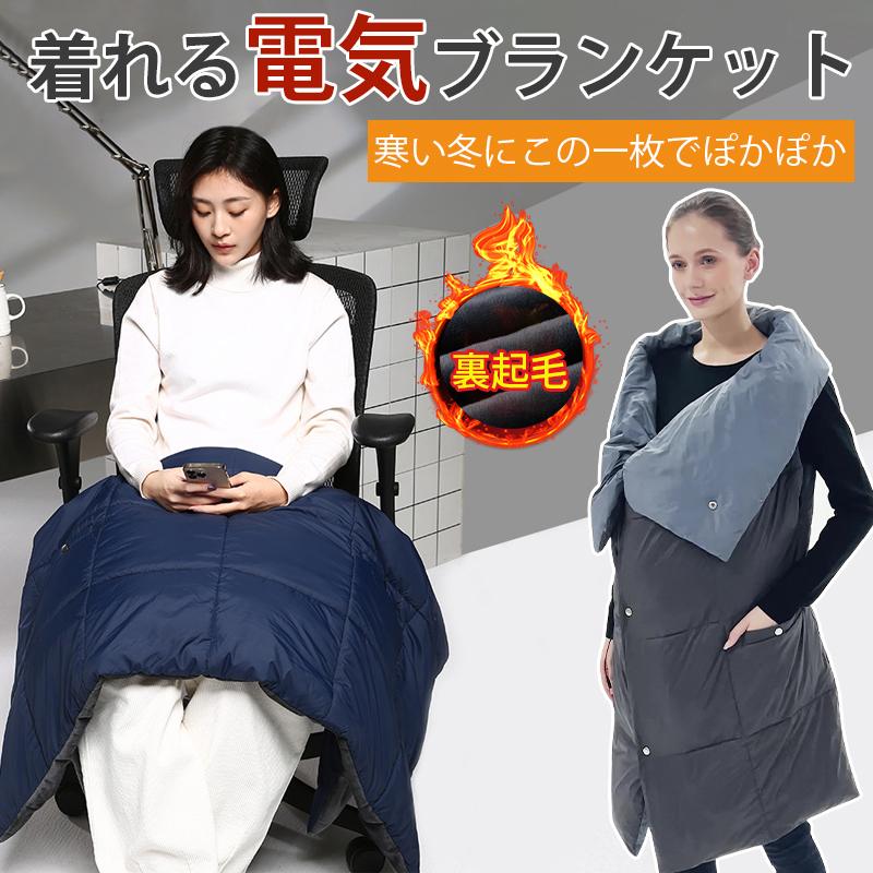 ■電熱ベスト 電気毛布 電気ひざ掛け 掛け着る両用 電気ブランケット 裏起毛加工 暖かい 丸洗い可 USB給電 3段階温度 保温 羽織る毛布