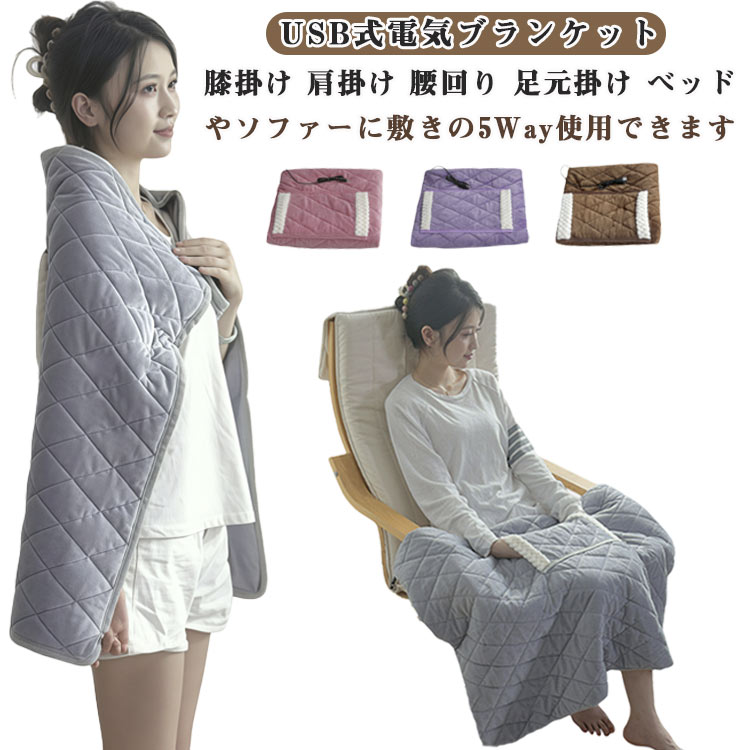 ■電気毛布 電気ブランケット 掛け着る両用 ホットブランケット 丸洗い可 USB給電 即暖 保温 ブランケット 膝掛け ヒーターブランクケット