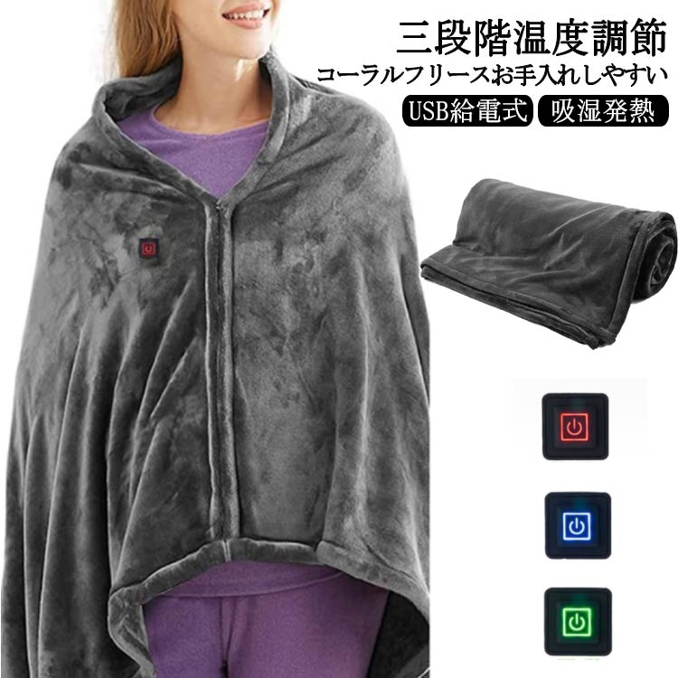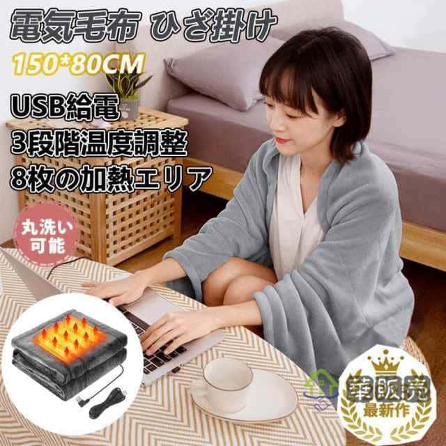 ■電気毛布 USB発熱膝掛け 肩掛け ブランケット ヒーター付 足元暖房 無地 防寒 冷え対策 USB給電式