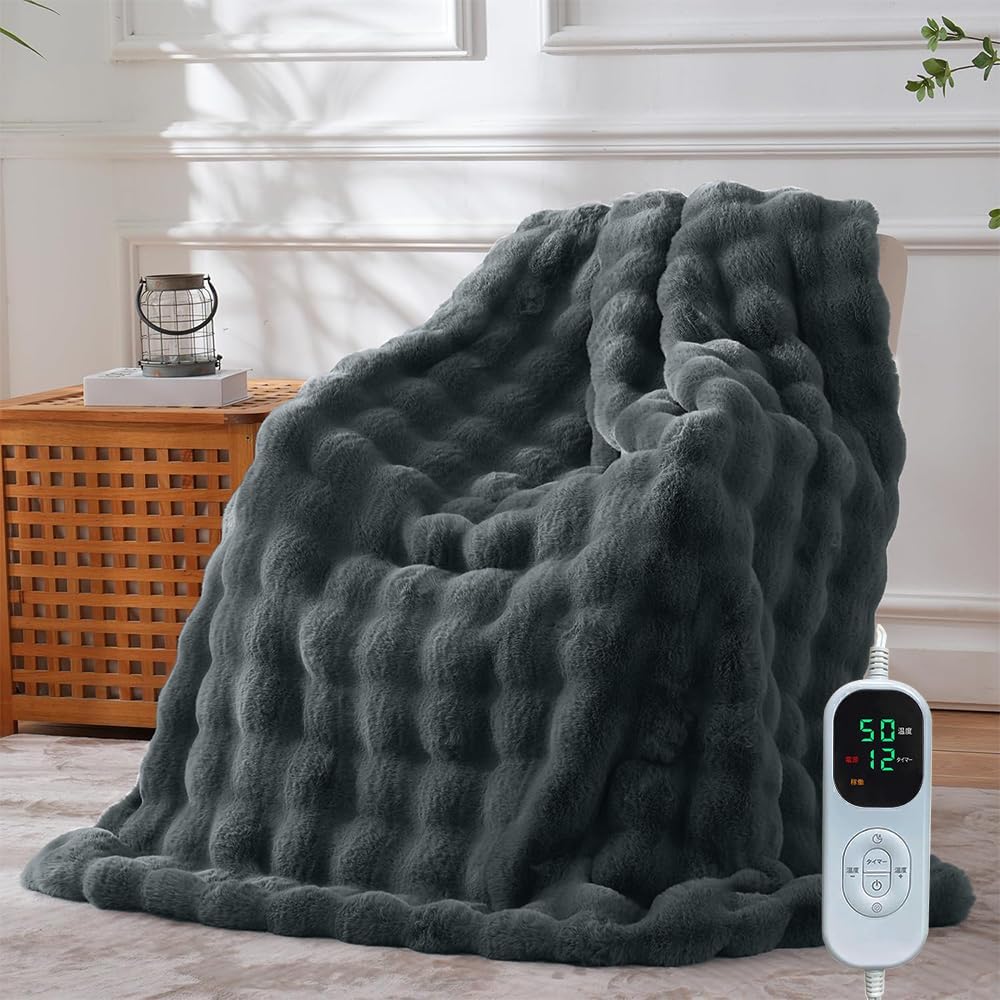 【極上の暖かさと使い心地】ふわとろのラビット風素材を使用した大型電気毛布(約190×130cm)。厚手生地で全身を包み込み、就寝時はもちろん、ソファーでのくつろぎタイムにも最適です。 【細かな温度・タイマー調節】30℃から50℃まで8段階の温度調節が可能。1〜12時間の6段階オフタイマー機能で消し忘れを防止。省エネ設計で、弱モード時は1時間約1.72円と経済的です。 【高い安全性と品質保証】日本製炭素繊維ヒーターを採用し、通電後すぐに温かく。過熱保護など五重の安全機能を搭載。PSE認証を取得しており、就寝時も安心してお使いいただけます。 【睡眠モードと静電気防止】睡眠モードでは40℃を維持し、夜間の長時間使用に最適。防静電加工により、乾燥期の不快な静電気を軽減します。 【清潔を保つ便利機能】ダニ退治モード(2〜3時間加熱)を搭載。コードを取り外せば洗濯機で丸洗い可能。到着後の不具合には24時間以内に対応いたします。