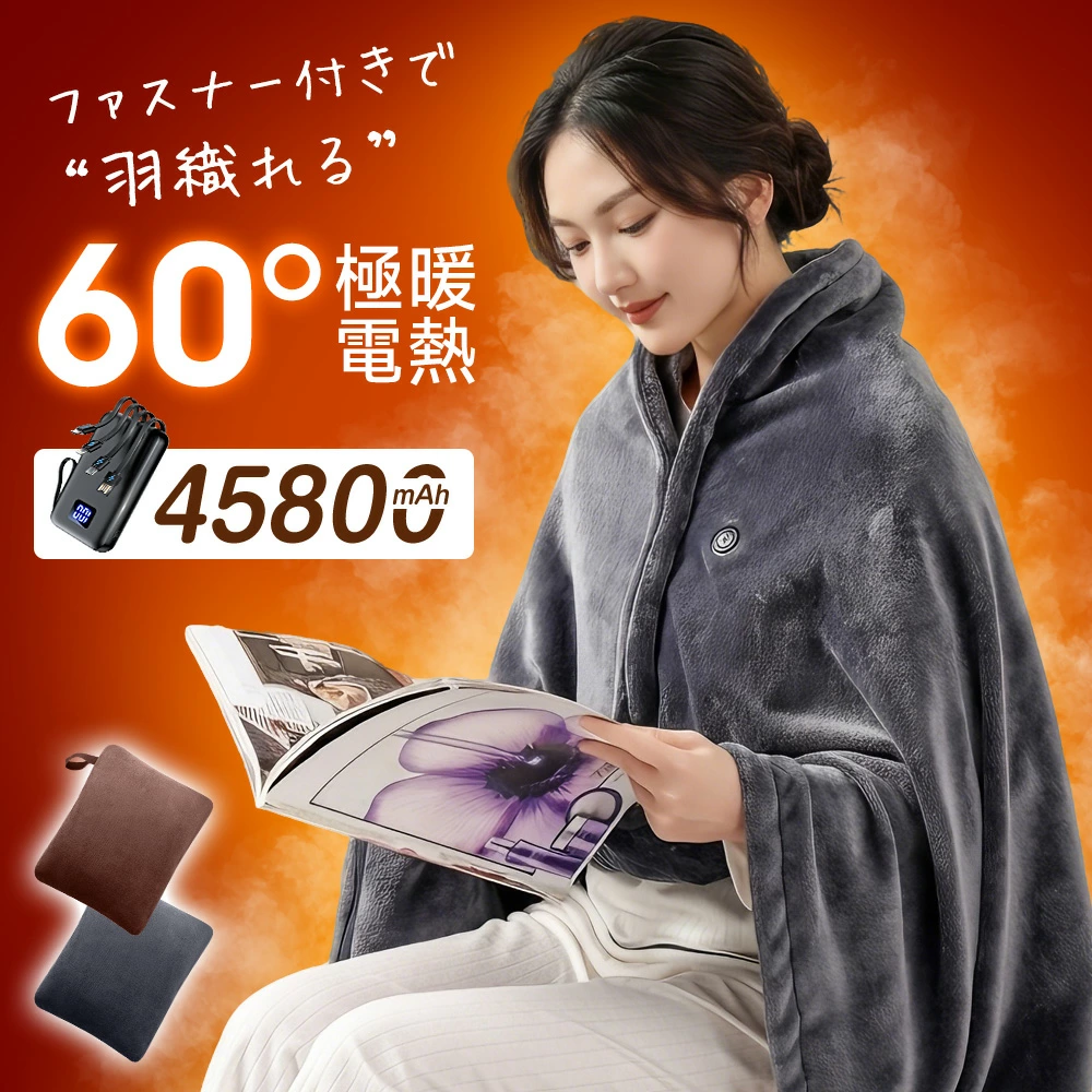 ■電気毛布 掛け敷き兼用 ひざ掛け毛布 9枚加熱エリア 20000MAH大容量バッテリー付き 150X80CM大判サイズ USB給電 最大13時間使用可能 日本