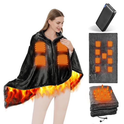 ■電気毛布 着る毛布 ひざ掛け USB給電式 8エリア発熱 3段階温度調節 丸洗い可能 省エネ 肩掛け 無地 ブランケット 大きめ 暖かい コードレ