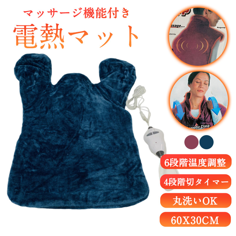 ■電気肩パッド 電気肩マットマッサージ機能付き 首/肩/背中/ひざ/腹 2段階温度切替 4段階マッサージ調整 電気肩掛け 電気毛布 マッサージ