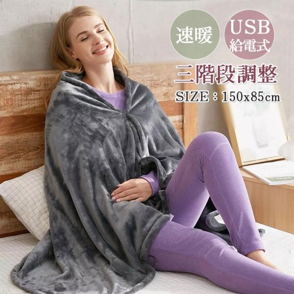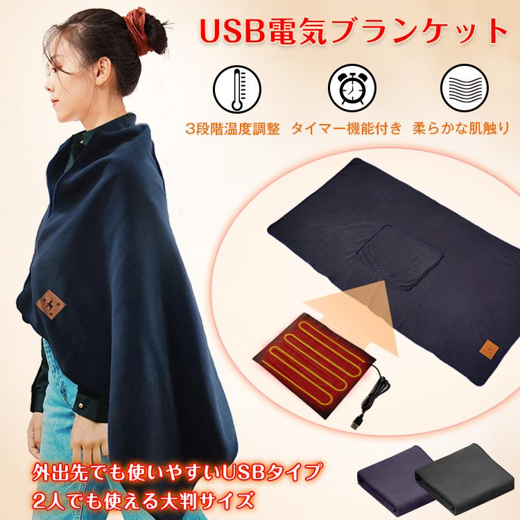 ■電気毛布 掛け毛布 USB給電式 140×80cm 暖かい毛布 防寒 丸洗い ヒーター 冷え対策 肩掛け 3段階温度調節 電気ひざ掛け ギフト プレゼ