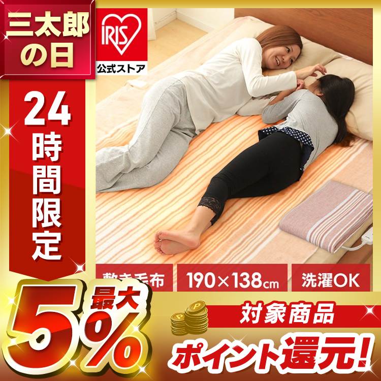 ■商品説明 ●お肌にやさしい天然素材の綿を使用 ●省エネ仕様で家計にもやさしい 従来品と比べ約38%省エネ ●本体丸洗いOK 主な機能:省エネ、コットン、ダニ退治、本体丸洗い、頭寒足熱配線 ※上記「ダニ退治」の"ダニ"とは"屋内じん性ダニ類"を指します。 ※お洗濯の際はコントローラーを外し、本体を洗濯ネットに入れてください。 ※ドラム式洗濯機は故障の原因となりますので、使用しないでください。 ■商品詳細 色柄:ベージュ、ストライプ サイズ:約188×130cm 組成: たて糸:ポリエステル100% よこ糸(毛羽部分):綿100% 消費電力:55W 表面温度:強:約52℃ 中:約36℃ 弱:約20℃ 消費電力量(1時間あたり):強:約31Wh 中:約18Wh 弱:約3Wh ブランド:広電