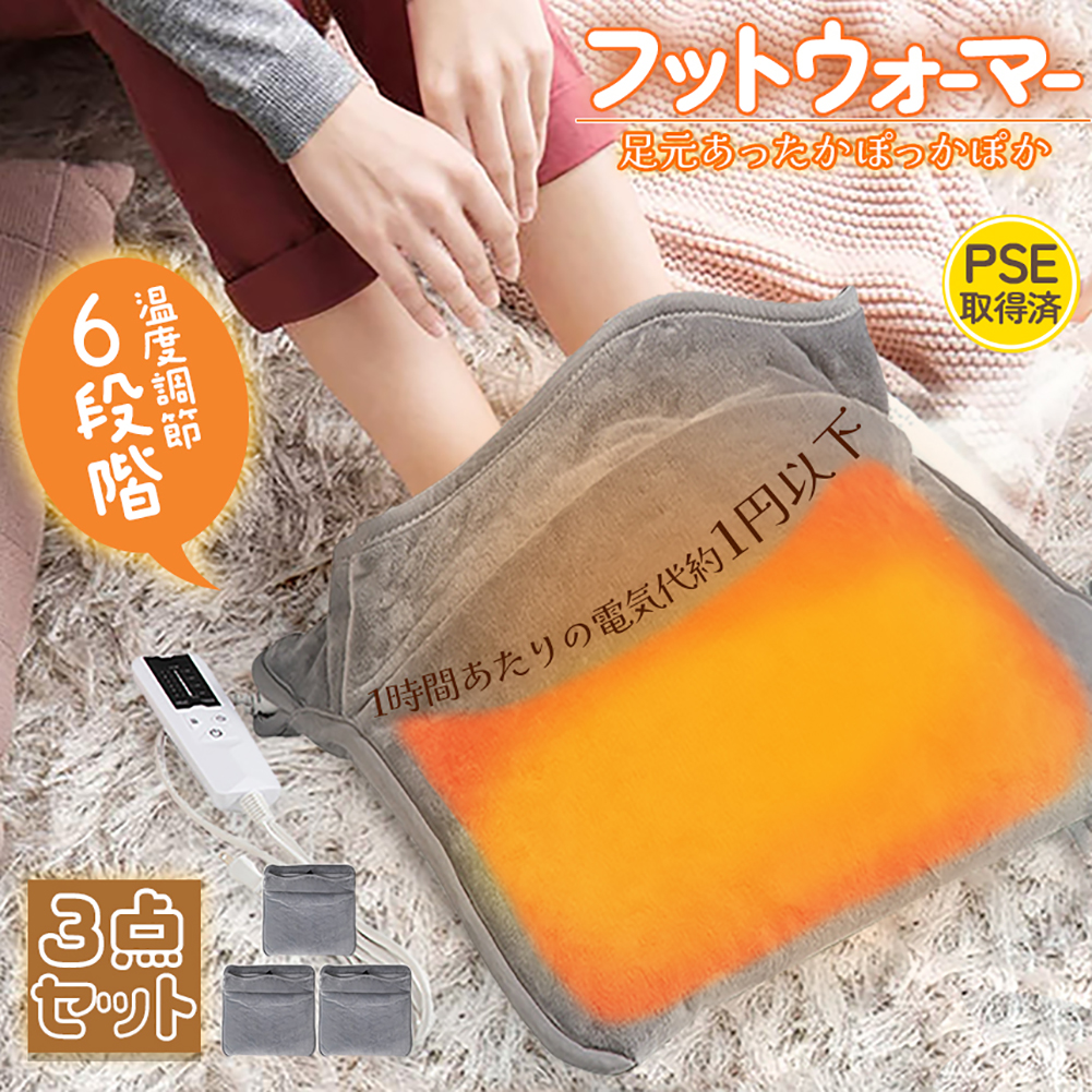 ■フットウォーマー3枚セット 電気足温器 足元ホットマット 足温器 足元 あったかグッズ 操作簡単 6段階温度調節 タイマー機能 省エネ 電気