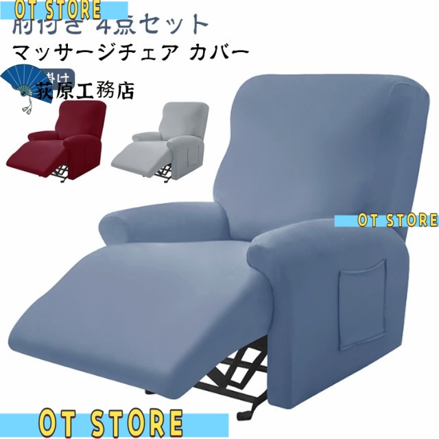 マッサージチェア 肘付き 4点セット 無地 1人掛け カバー サイドポケット リクライニングチェアカバー マッサージチェア 電動ソファ ストレッチ 伸縮性 フィットタイプ ソファカバー マッサージソファ用 着せ替えカバー 肘あり