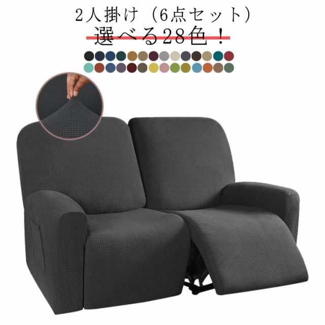 ■全28色 二人掛け リクライニングチェアカバー 2人掛け ソファーカバー 6点セット マッサージチェア 水洗いOK 無地 ソファーカバー ストレ