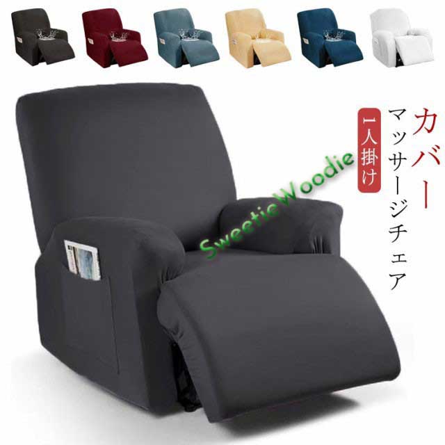 ■マッサージチェア カバー リクライニングチェアカバー 肘付き サイドポケット 無地 ストレッチ フィットタイプ ソファカバー マッサージ