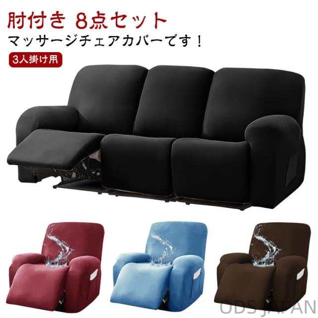 マッサージチェア マッサージチェア 肘付き 電動ソファ ソファーカバー 3人掛け 無地 8点セット カバー カバー ストレッチ 伸縮性 フィットタイプ サイドポケット マッサージソファ用 着せ替えカバー 肘あり