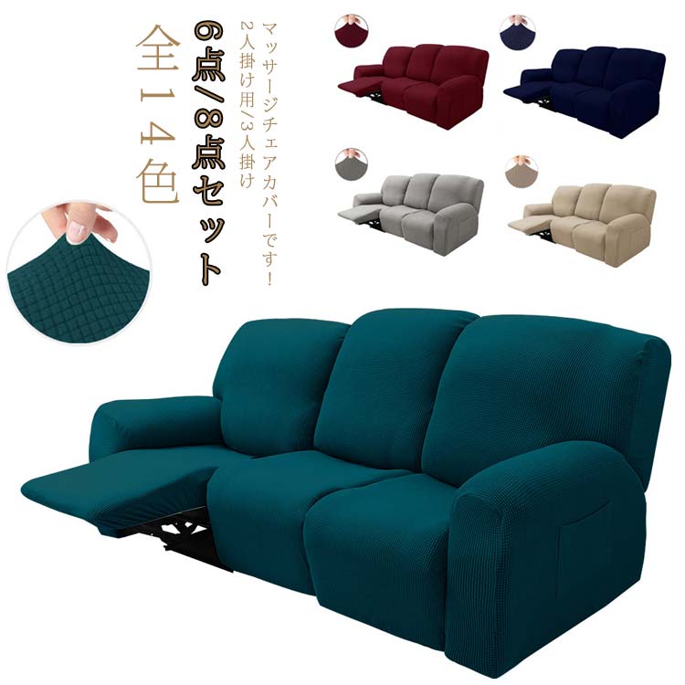 ■カバー マッサージチェア リクライニングチェアカバー 汚れ防止 8色 三人掛け 掛け 肘付き 3人 フィットタイプ 肘付き 6点/8点セット サ