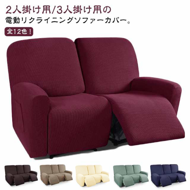 ■カバー 肘付き マッサージチェア 電動ソファ 6点セット 2人掛け サイドポケット フィットタイプ ソファーカバー 無地 ストレッチ カバー
