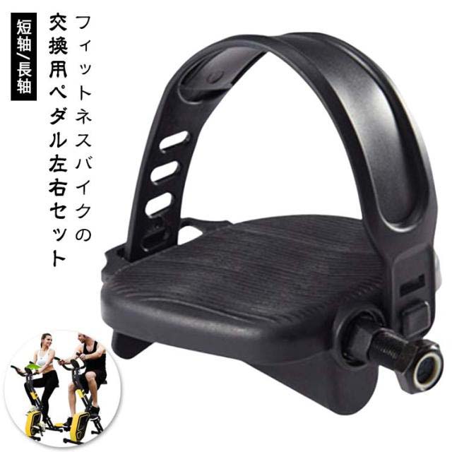 【左右セット】 ペダル 交換用 エアロバイク フィットネスバイク スピンバイク バイク 自転車 交換 取り替え 汎用 ベルト調整可能 スポーツ ジム トレーニング フィットネス 施設 運動 スポーツセンター 短?/長? ねじ径:1/2 ねじ径:9/16