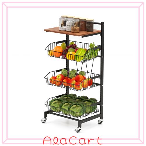 ■Giantex キッチンワゴン キャスター付き 大容量 4段 引き出し式のバスケット 調味料ラック キッチンカート 炊飯器 調味料 小物 木目調 収