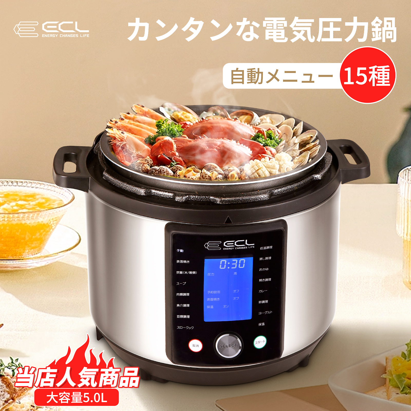■ECL電気圧力鍋 5.0L 一台15役 スロークッカー 調理家電 炊飯器 調理家電EC‐EPC5 電気鍋 圧力鍋 ナベ あつりょくなべ 電気圧力なべ 5L