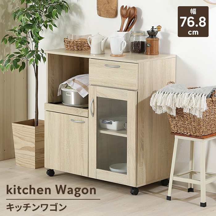 ■【値下げ】キッチンワゴン キッチン収納 キッチンラック キャスター付き 引き出し付き カウンター 食器棚 炊飯器 レンジ おしゃれ シンプ