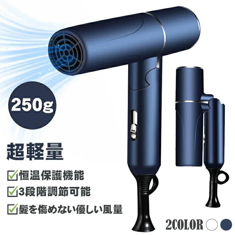 ■超軽量250g コンパクト折り畳み ドライヤー 静音設計 3段階温風/風量調整 過熱保護 おしゃれ 旅行用 女性用