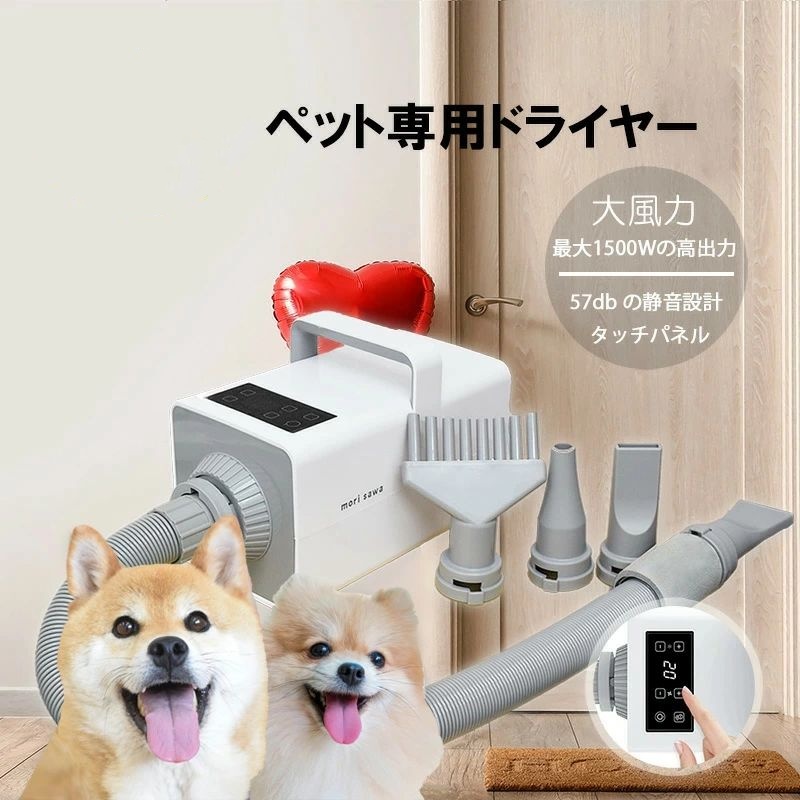 ■ペットドライヤー 犬 ブロワー 静音設計 業務用 トリミング ドライヤー 速乾 タッチパネル式 4種ノズル付き 冷風 温風 簡単切替 ペット用