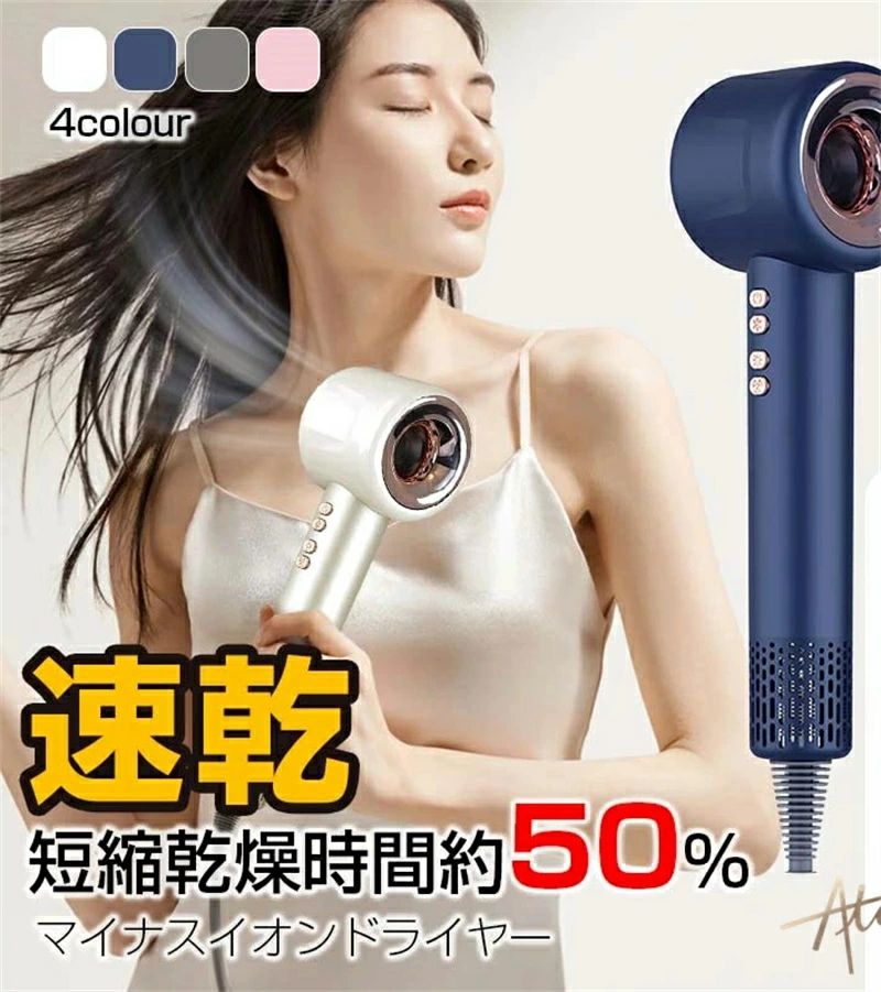■ドライヤー 速乾 大風量 2024 ヘアドライヤー 冷熱風 4段風温 3段風量 高濃度マイナスイオン 乾燥時間50%短縮 静電気除去 髪が潤う 髪に