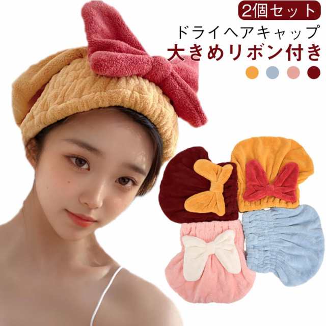 短い髪 ドライヘアキャップ ドライキャップ 2枚セット ヘアタオル ドライヤー 時短 リボン タオル 髪 速乾 ふわふわ 吸水 お風呂 洗顔 レディース 女性