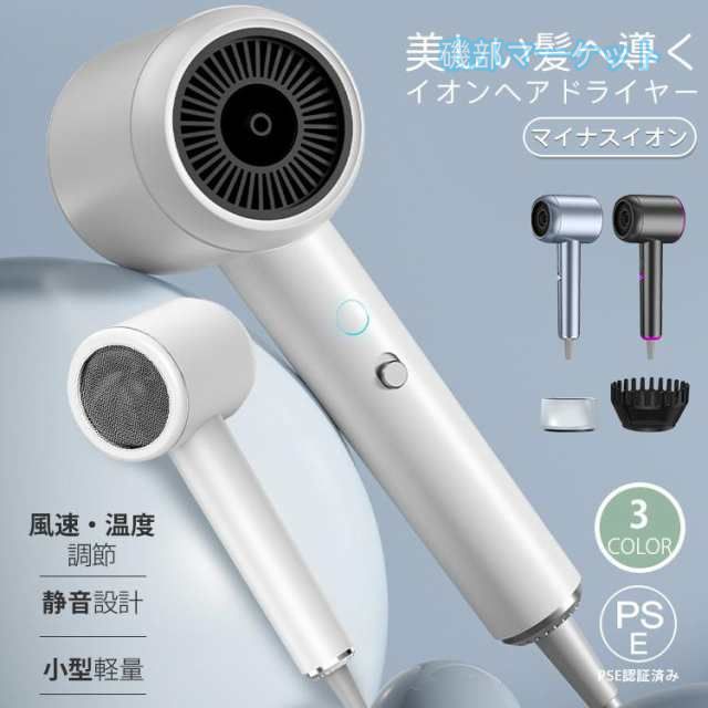 ドライヤー 速乾 大風量 4段階調節可能 過熱保護 ヘアドライヤー ヘアケア 冷熱風 2億マイナスイオン 髪質改善 美髪 高速 温度調整 超軽量 低騒音 PSE認証