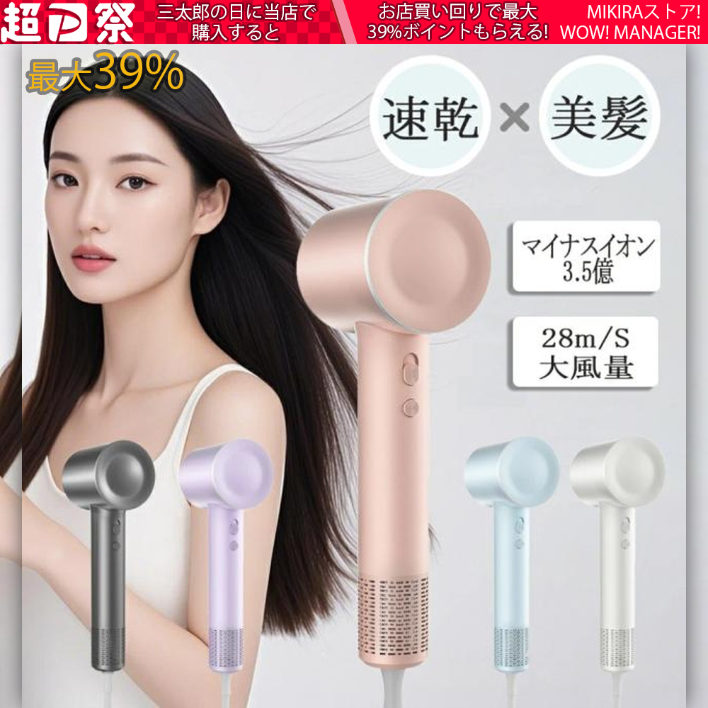 ■ドライヤー ヘアドライヤー 速乾 冷熱風 大風量 マイナスイオン 高級 軽量 静音 3段階風速 温度調整 過熱保護 おしゃれ 美容家電 美髪 髪