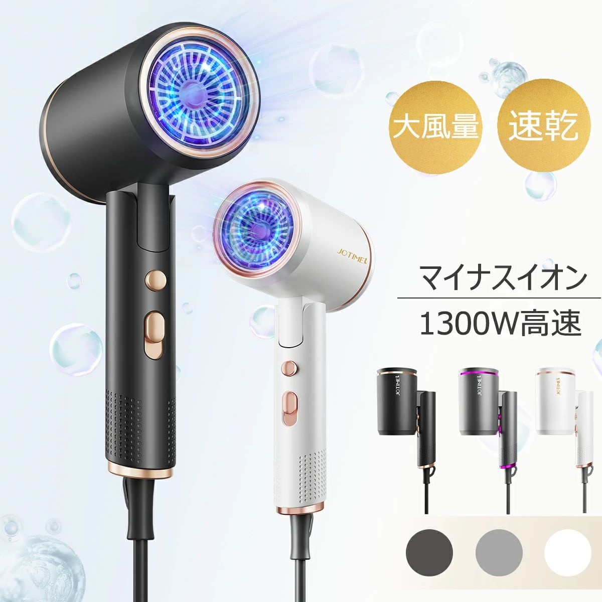 ■2025最新モデル ドライヤー 大風量★旅行用★折り畳み式 軽量★1300W マイナスイオン 収納 コンパクト 速乾 マイナスイオンドライヤー 3