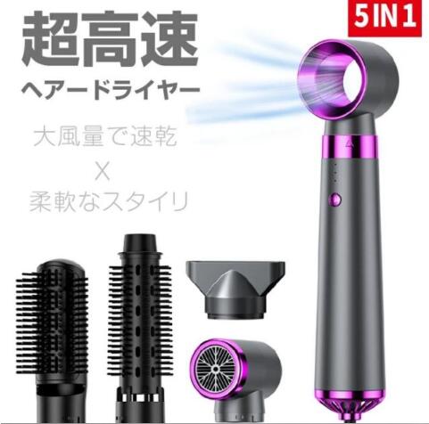 新作 5IN1 超高速 高風量 ドライヤー 大風量 イオンテク 3段階風量 速乾ドライヤー プラス・マイナスイオン 速乾 ストレートヘアドライヤー カールヘアケア アイロン マイナスイオン 低騒音 軽量 小型 冷風 温風