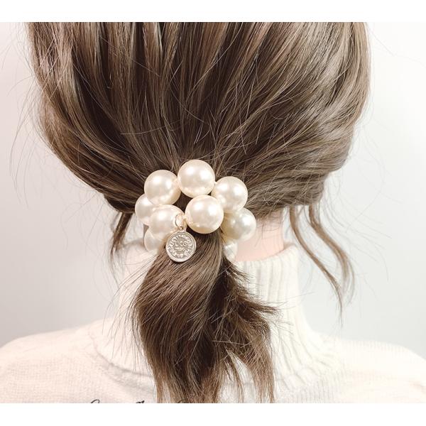■イミテーションパール 髪飾り ヘアゴム ヘアアクセサリー シュシュ 大きめパール お出かけ デート おしゃれ かわいい 人気商品 送料無料