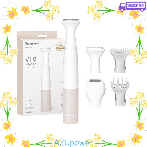 ■パナソニック VIOシェーバー フェリエ IPX7防水 ドライ剃り 除毛器 乾電池式 ベージュ調 ES-WV63-E 【シナモロールステッカー付】