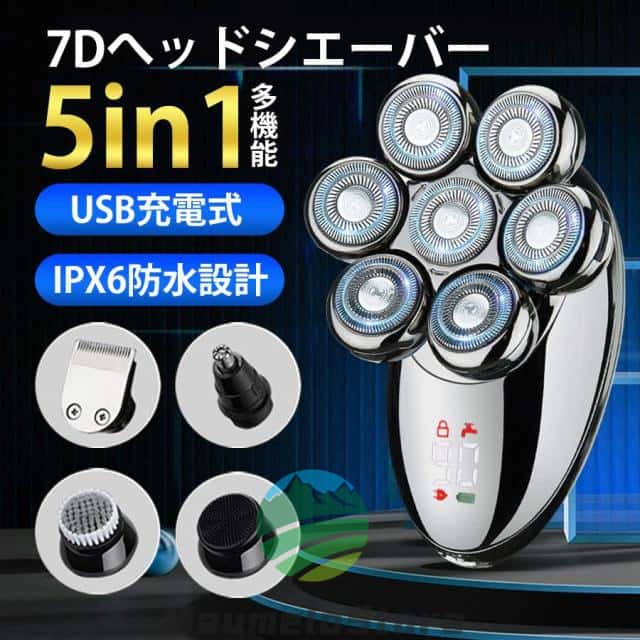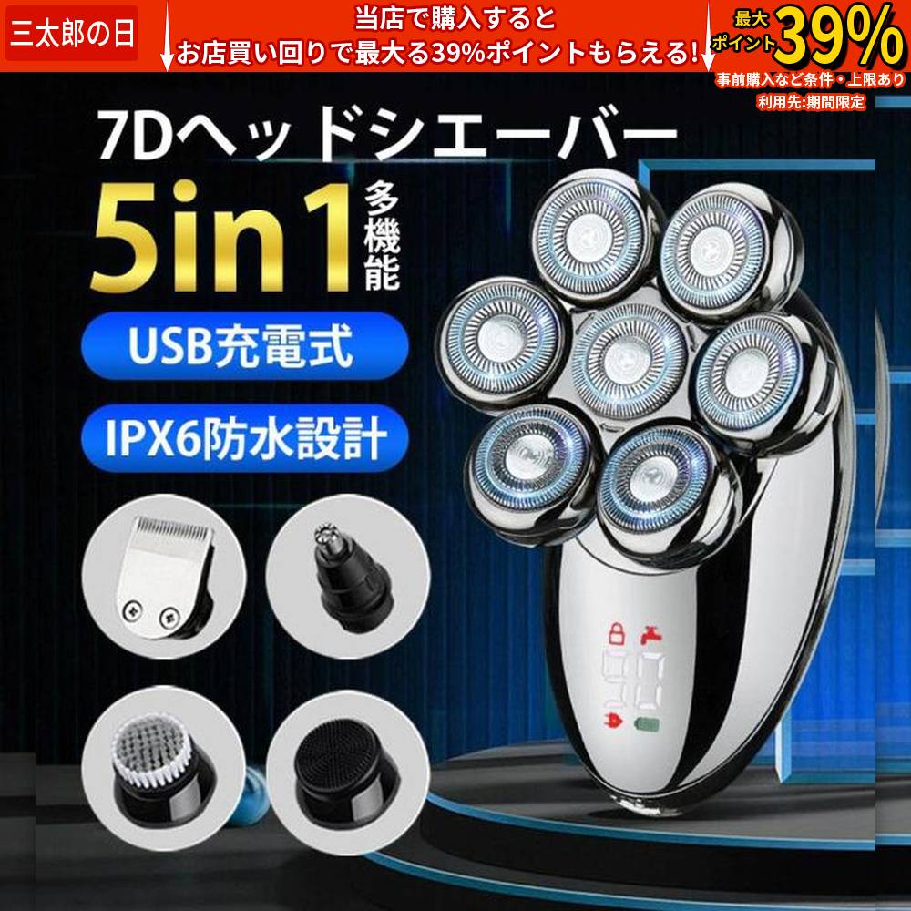 スキンヘッド シェーバー7枚刃 髭剃り 電動シェーバー 6in1 IPX7防水 お風呂可 乾湿両用 ひげそり マグネット ヒゲトリマー 鼻毛カッター UBS充電
