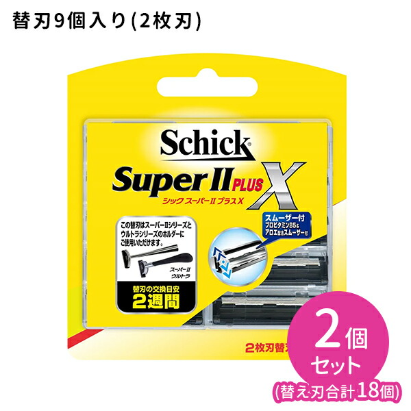 ■スーパーII プラスX 替刃 9個入 2個セット 剃刀 カミソリ シェーバー 髭剃り シェービング 2枚刃 深剃り 交換用 プロビタミンB5配合 身だ