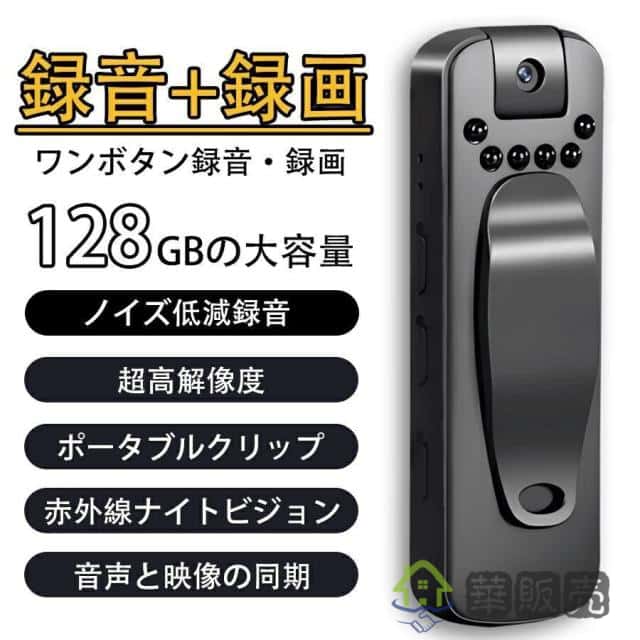 ■ボイスレコーダー 録音+録画 小型 icレコーダー 128GB 超高解像度 レンズ180°回転 赤外線ナイトビジョン 音声と映像の同期 超小型 超軽