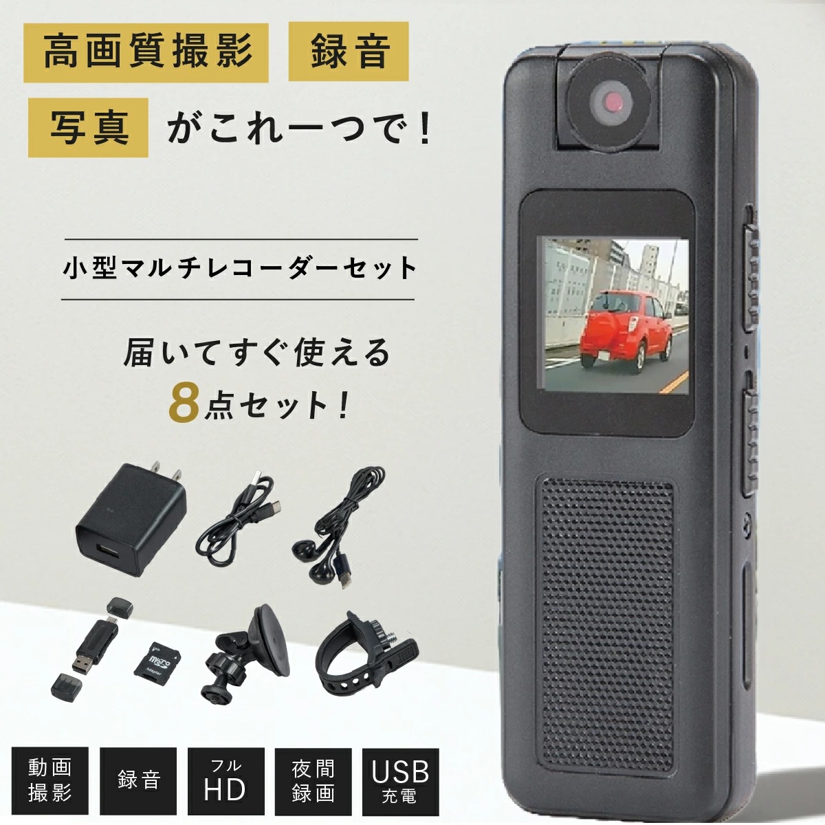 ■多機能小型マルチレコーダーセット ファミラ 充電式 ドラレコ 監視カメラ 車 自転車 バイク ドライブレコーダー ICレコーダー ボイスレコ