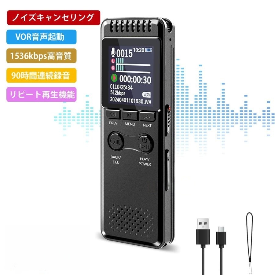 ■ボイスレコーダー 小型 ICレコーダー 長時間録音 128GB大容量 3072kbps音質 48時間連続使用 コンパクト 録音機 ワンボタン録音 液晶画面