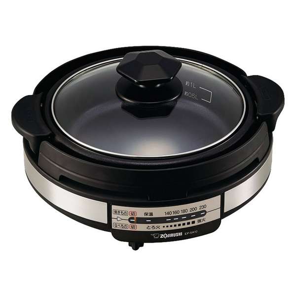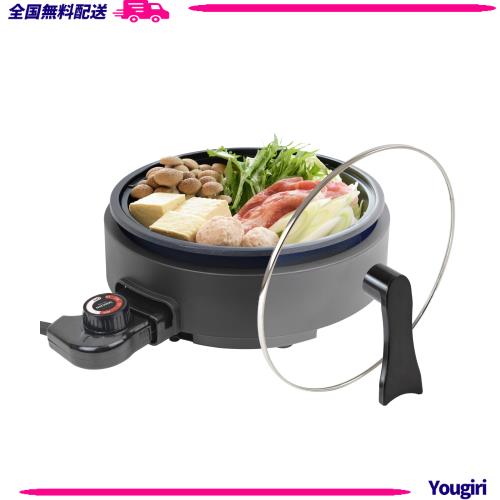 ■[山善] 電気鍋 グリル鍋 深鍋プレート 一人鍋 鍋直径21.9cm 深さ6cm 着脱式プレート 温度調節機能 保温機能 自立蓋 ガラス蓋 ブラック YG